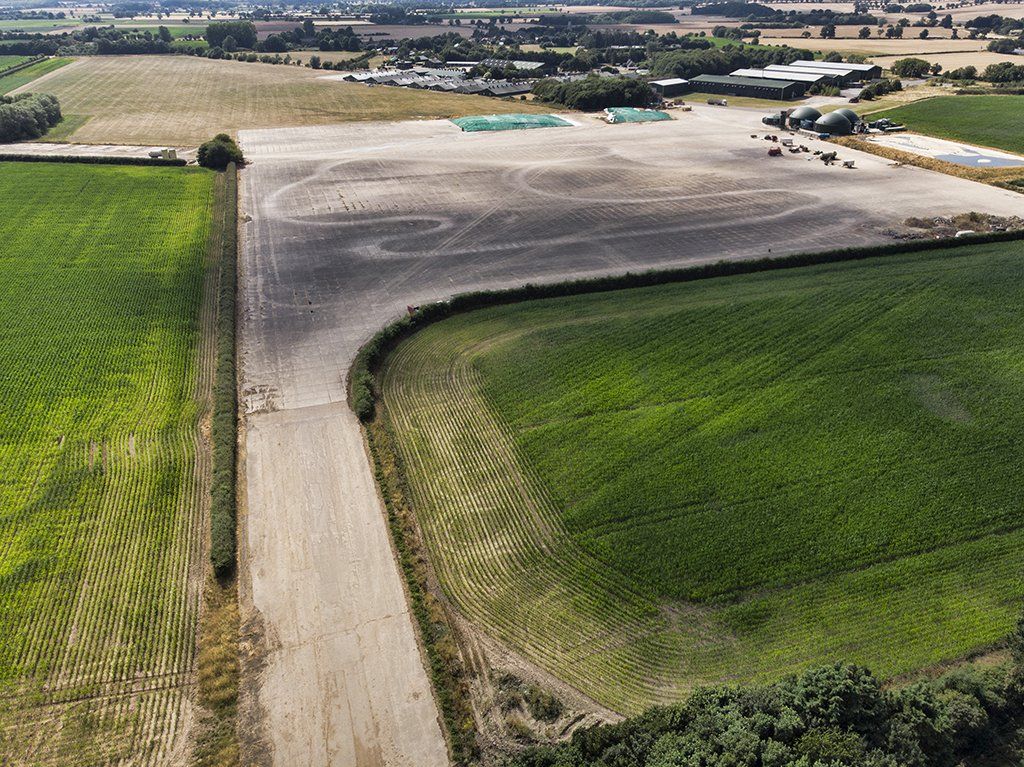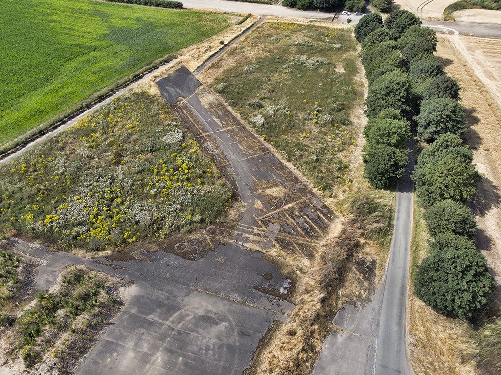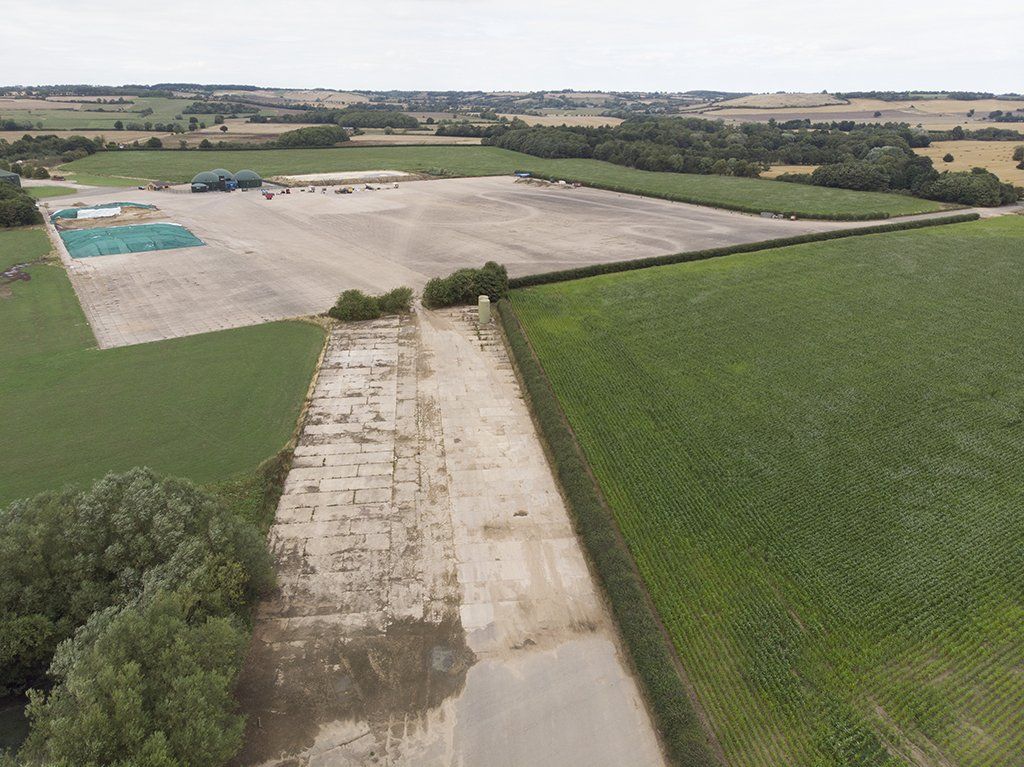 In response to an Invitation to Tender issued by the Air Ministry on January 26th 1942, John Laing & Son Ltd were awarded the tender to build the airfield. A sum of £248,000 was allocated for main buildings and £310,000 for runways (including drainage and lighting [Drem Mk.II] for runways & perimeter). The total cost, including land purchases and ground levelling was some £1,000,000. The runways, in an ‘A’ Frame lay out were an average thirty-three feet above sea level with the main 02-20 at 6,000 feet in length and subsidiaries 08-26 and 13-31 both 4,200 feet long. All runways had a width of 150 feet and an extensive perimeter track with a width of fifty feet was laid with a length of some three miles, linking twenty-seven pan and eight loop type hard standings. Initially two T2 hangars were provided, one on the technical site between runway heads 08 and 13, and the second south of runway 26. Later a B1 hangar was erected between the technical site T2 and runway 08. Visible from Fen Road, and just off the northern perimeter track, was the aircrew survival equipment building and stores. This would have been one of the last buildings a crew would visit before heading off to their Lancaster at dispersal prior to operations. In the spring of 1944 four T2 hangars were added west of runway 20 and near the A155 road. The Watch Office, also known post-war as the Control Tower, was built to specifications 12779/41, modified to specification 343/43.